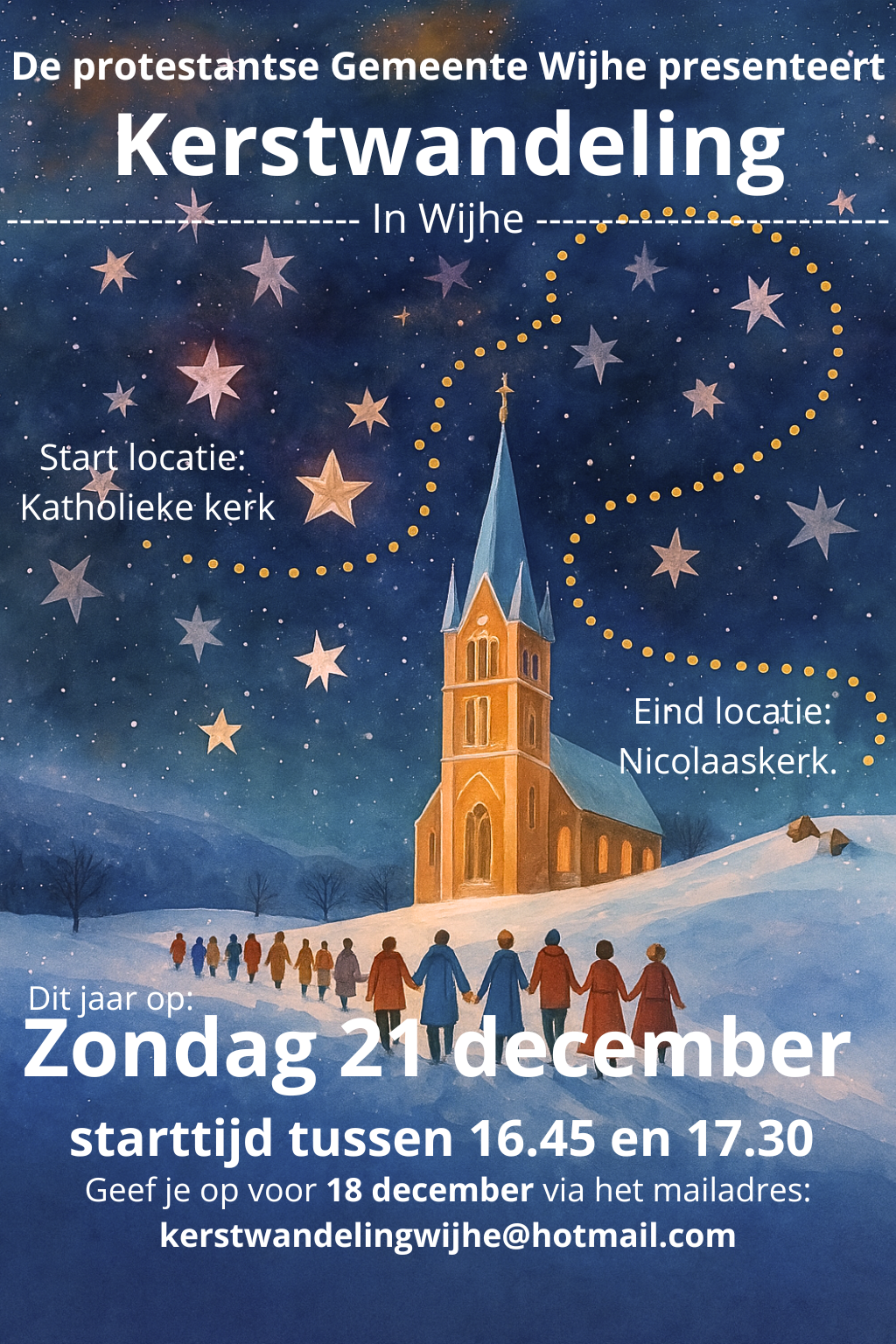 Kopij aanleveren uiterlijk vrijdag 21 bovember voor 19.00 uur via kerkblad@pgwijhe.nl. Kerkblad kan opgehaald worden door de bezorgers op donderdag 4 december vanaf 16.00 uur.