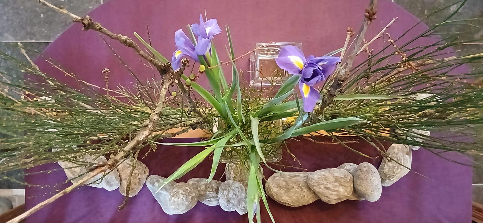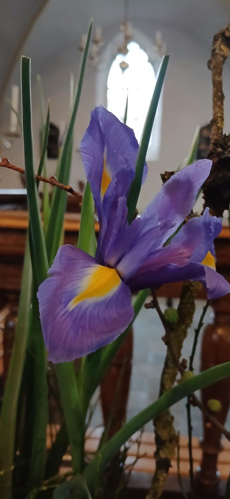 Iris: hemelsblauw, goddelijk geel, zuiver wit.